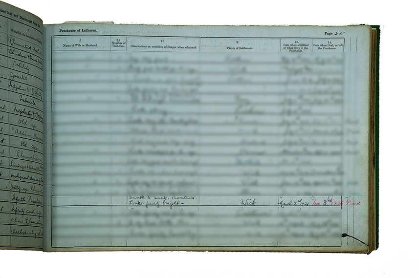 Although the McRae family went to Caithness at the time of the Highland Clearances we can only speculate as to why Elizabeth was admitted to the Poorhouse there when her family lived in Edinburgh, 250 miles away.